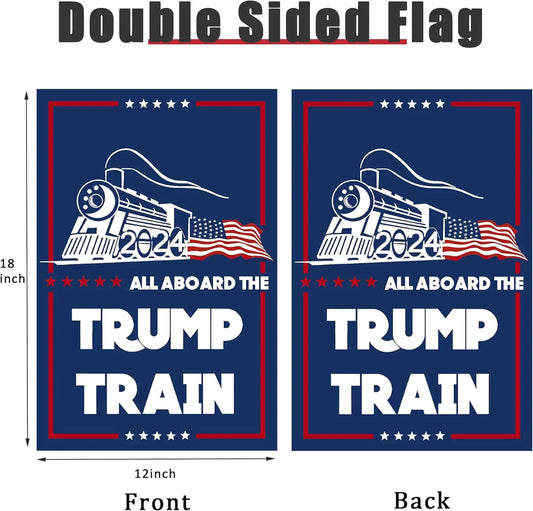 Trump Flag Train Donald Trump Flags Support for President 2024 Banner All Aboard The Trump Train 12x 18 Inch Trump 2024 Garden F