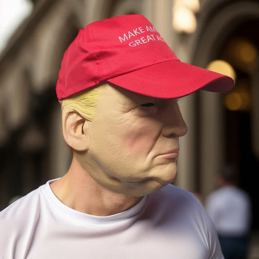 Trump Mask With Hat Celebrity Spoof Mask Embroidered MAGA Support Hat Rave Party Cosplay Realistic Donald Trump Mask Prank Props